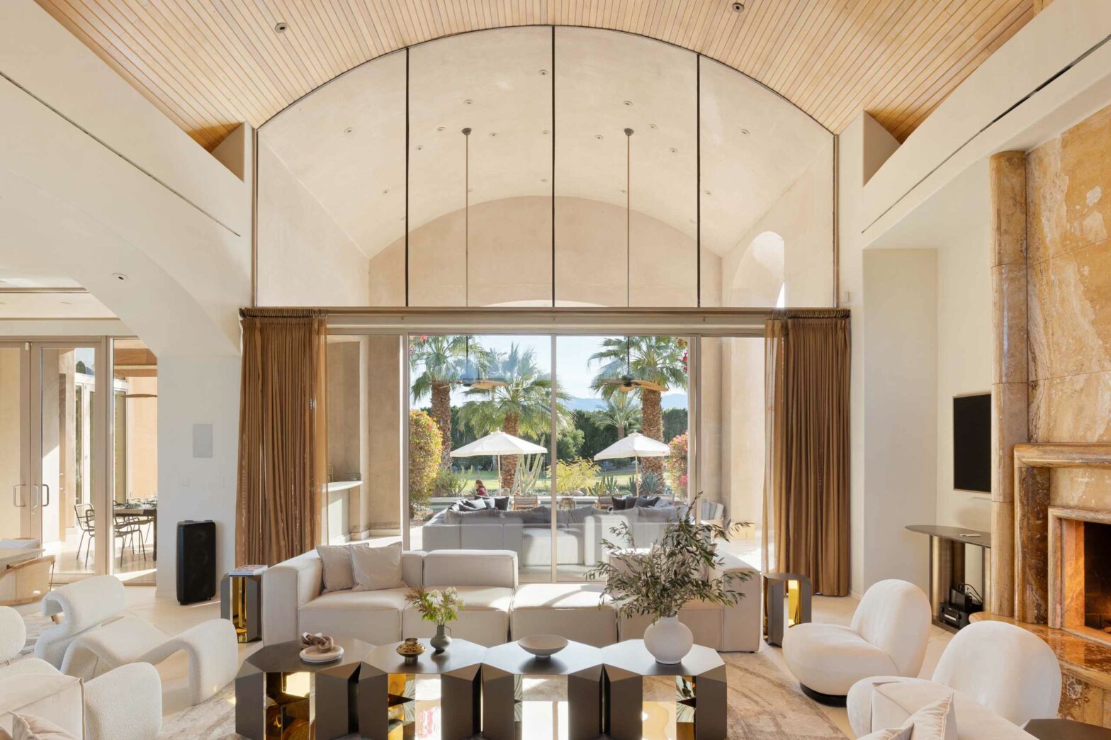 Cozy fireplace with multiple living spaces